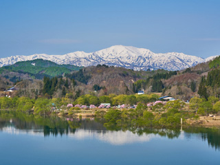 | 飯豊山と白川湖 | 農家民宿いろり母屋 | 中津川の夕暮れ | 雪の華 | |||||